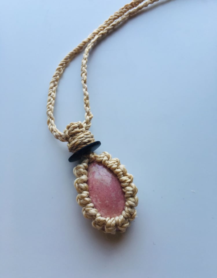 国産100%精麻と希少な乙女鉱山水晶の石包みペンダント