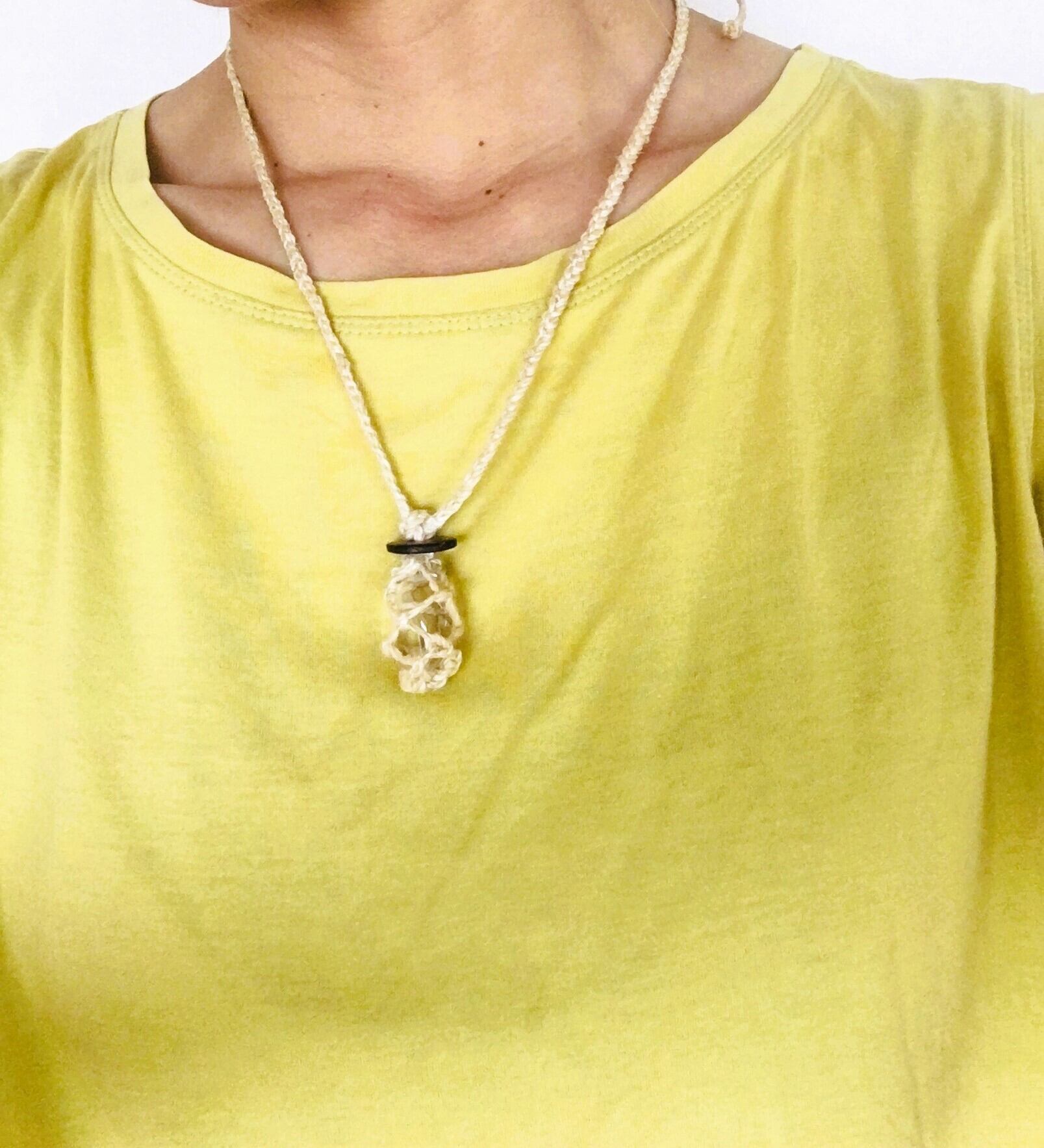こちらの商品は、グレードAAAAAランクのヒマラヤ水晶を精麻で包みペンダントにしています。
