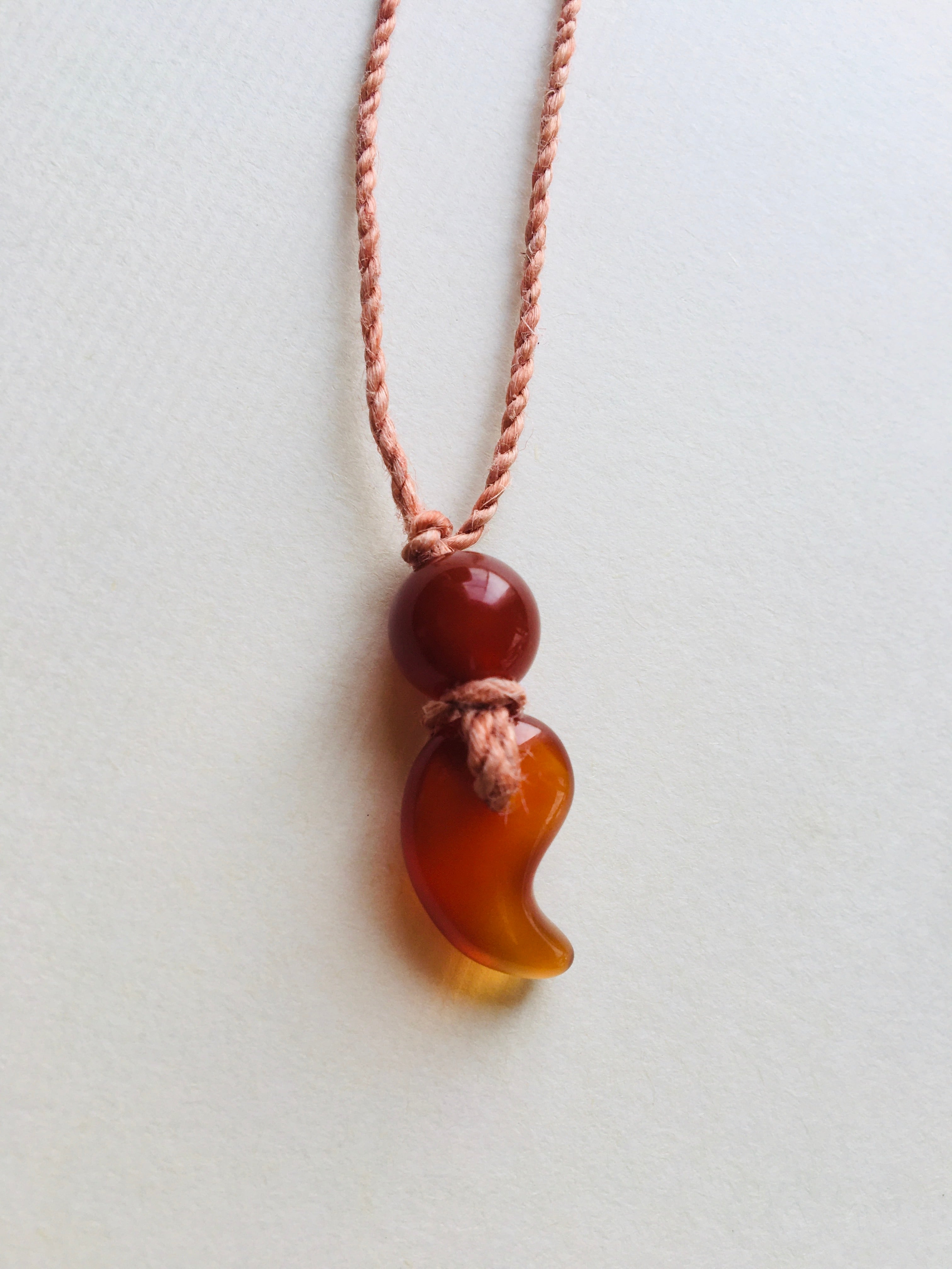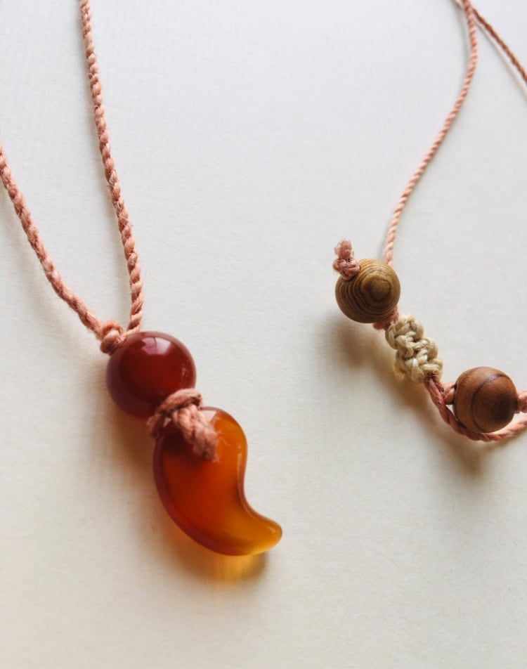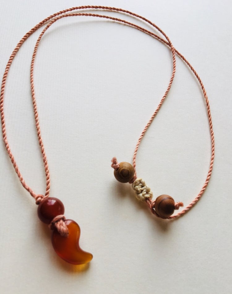 茜精麻の神結びネックレス ~屋久杉とカーネリアン~