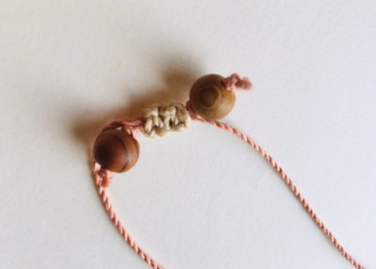 こちらの商品は、国産100%の茜染め精麻から紐を作り、世界自然遺産・屋久杉のビーズを結び終わりにあしらったネックレスです。