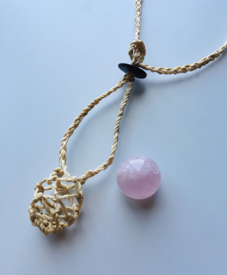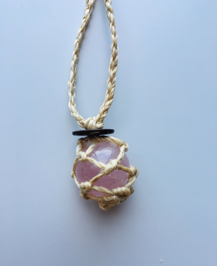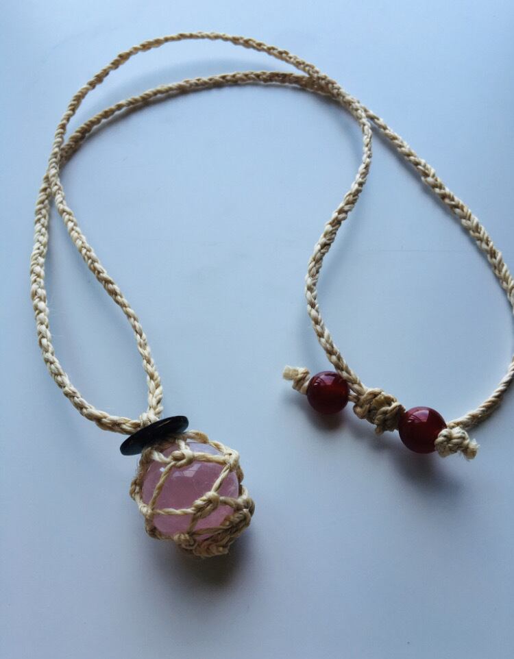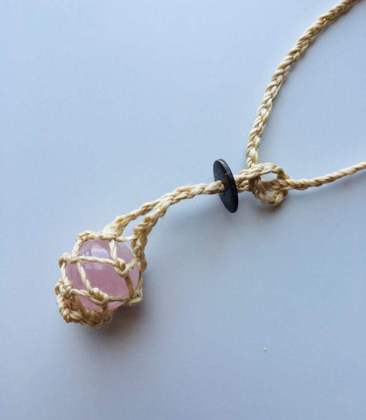 精麻とローズクォーツの石包みペンダント ~愛と美の守護~
