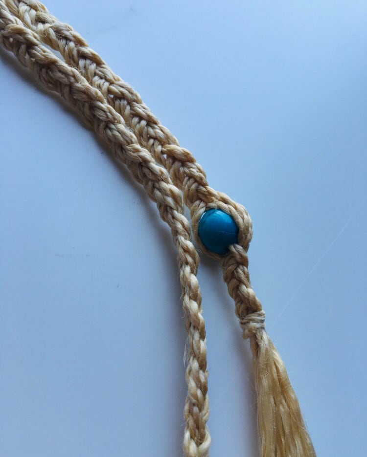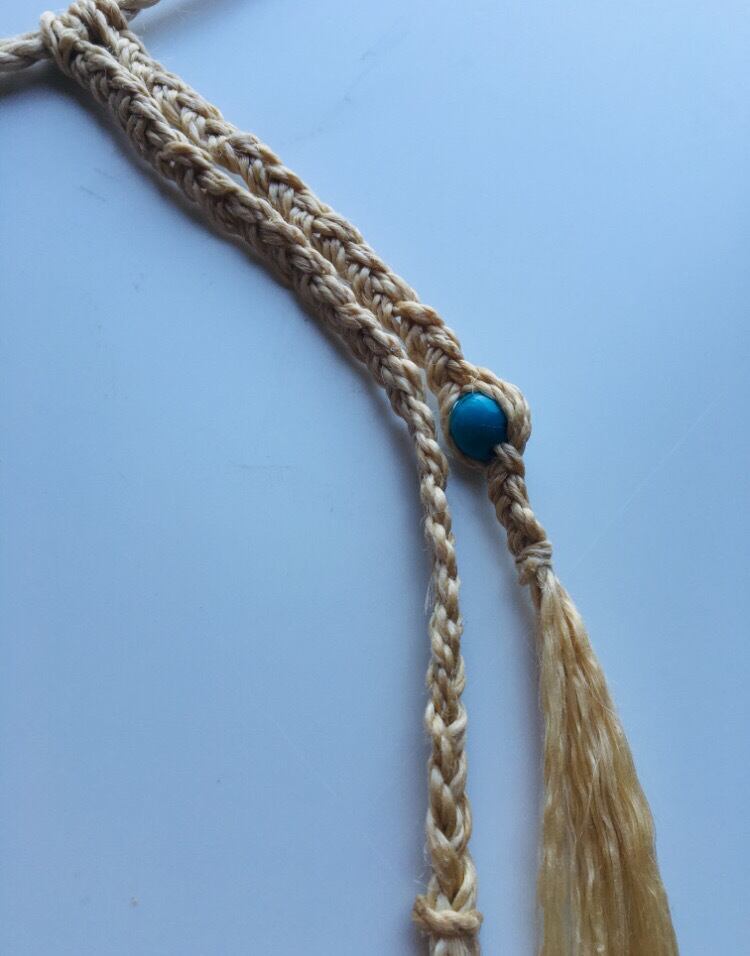 こちらの商品は、希少な国産100%の特等精麻を使用したヒッピーバンドです。飾り部分には、鮮やかな青緑色が美しい天然石ターコイズをあしらいました。