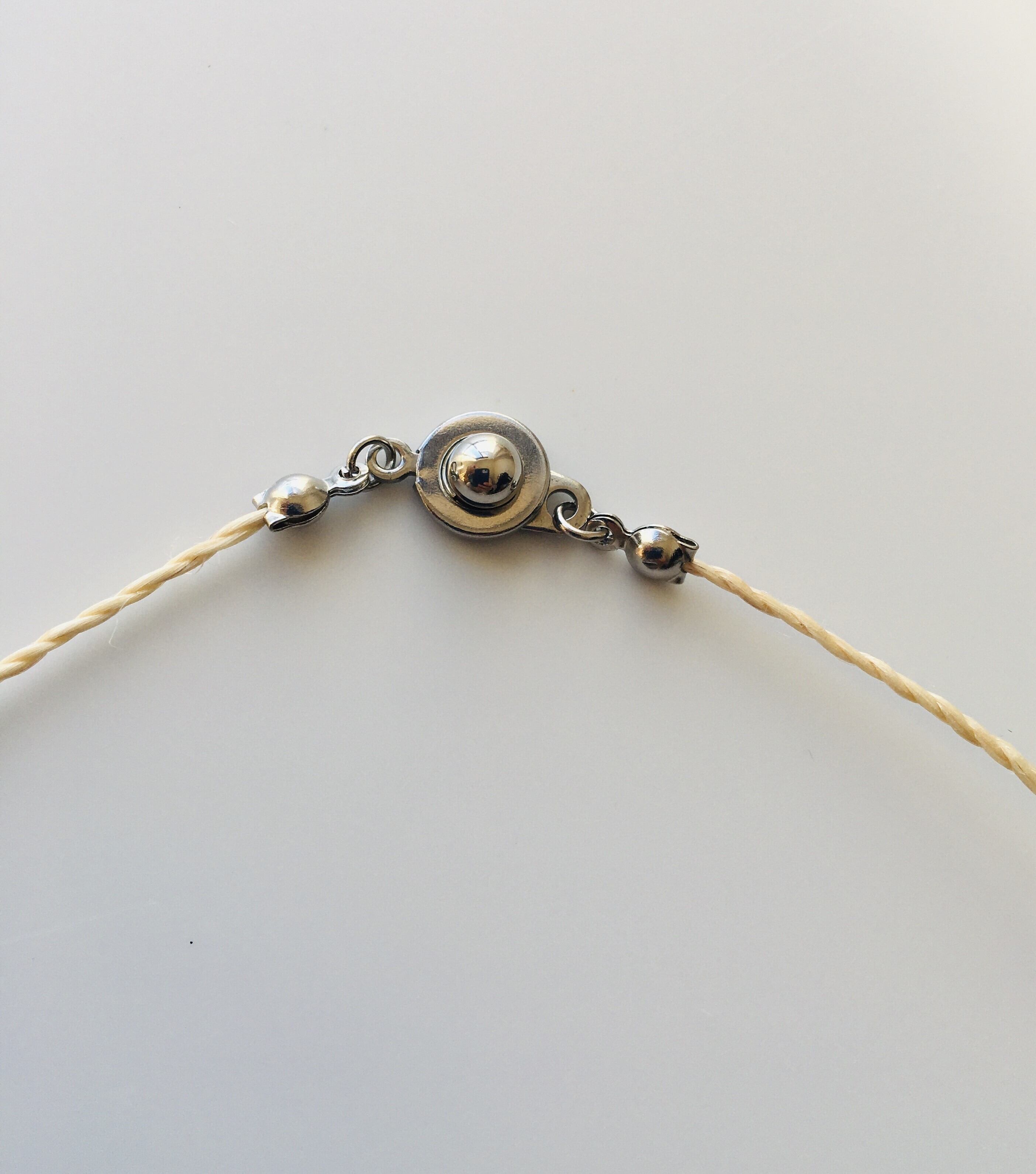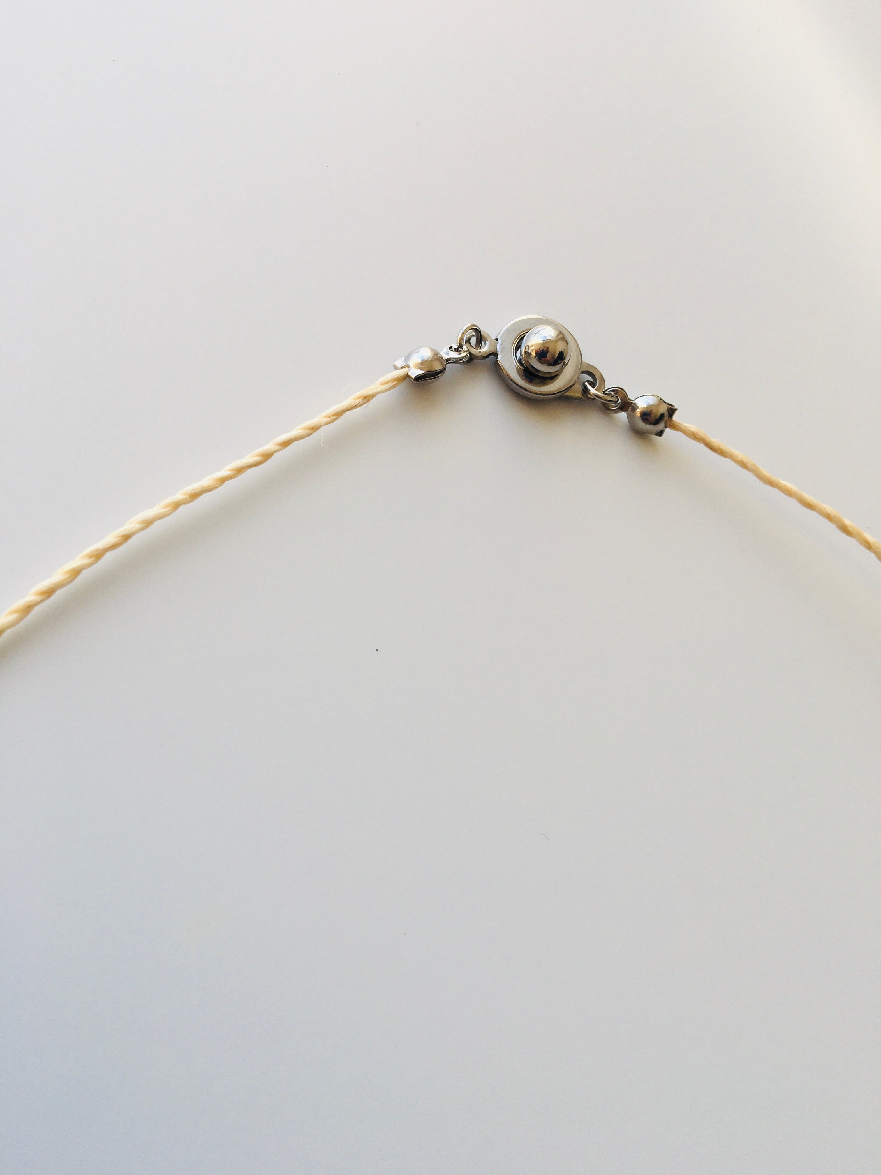 This pendant pairs a pure Japanese seima cord with a delicate freshwater shell heart charm. Seima has long been honored in Japan as a sacred material for purification and protection, while the soft grey sheen of the shell reflects light gently with each movement. A quiet, protective piece that brings calm, natural beauty into your everyday life.