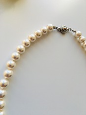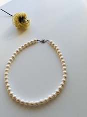 国産100%の精麻(せいま)の紐と、上品なホワイトシェルパールを合わせた、清らかで洗練されたネックレスです。
