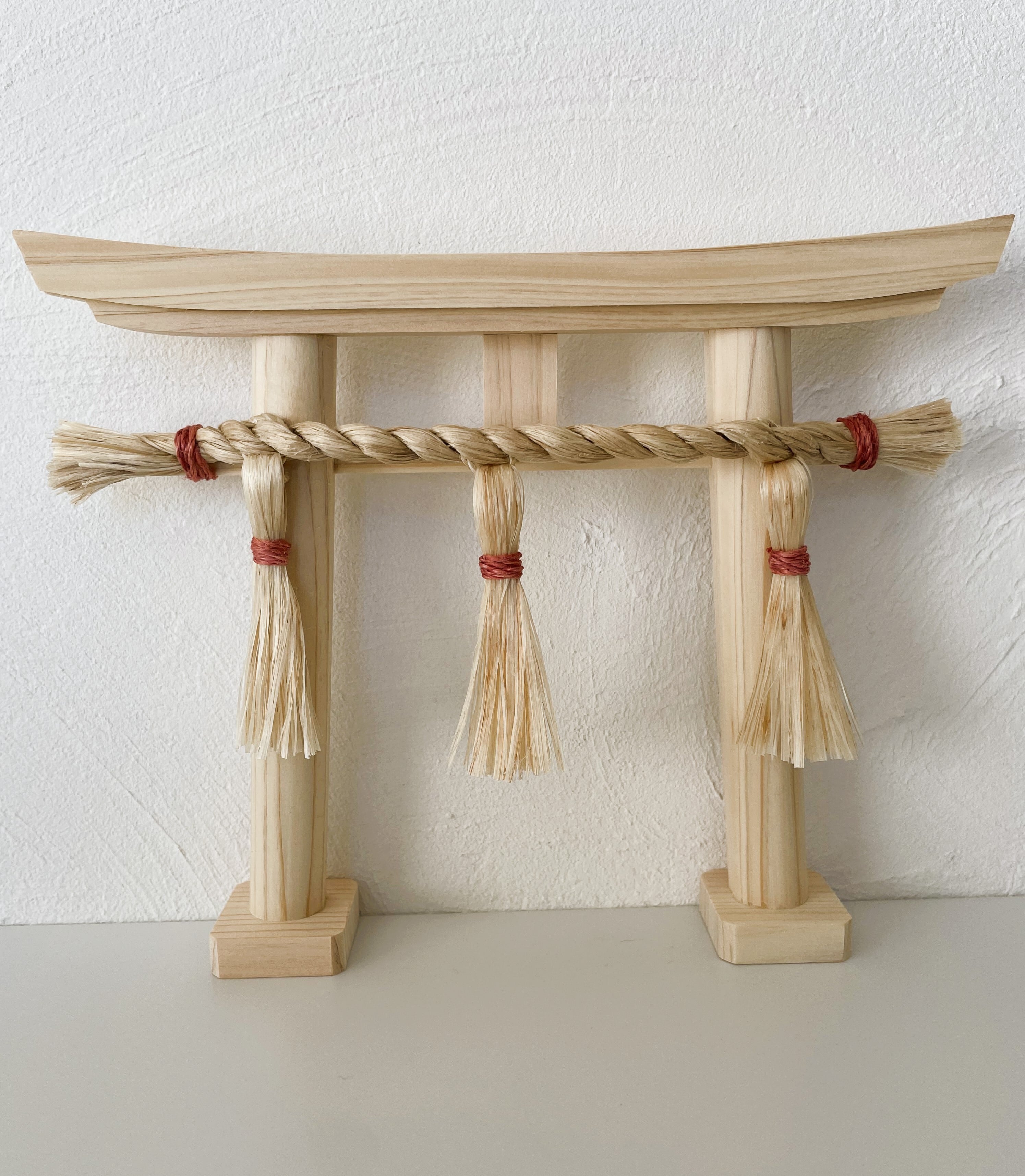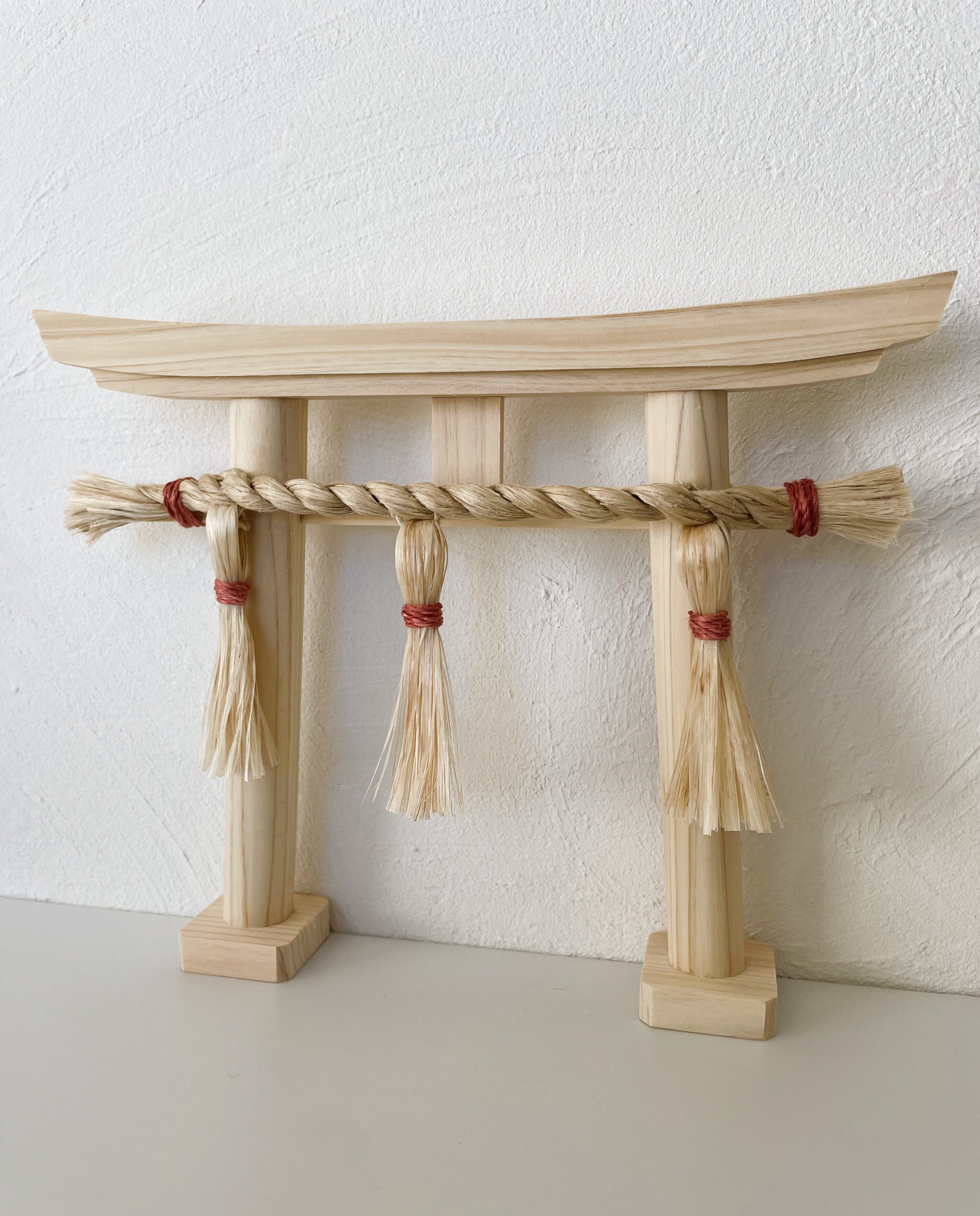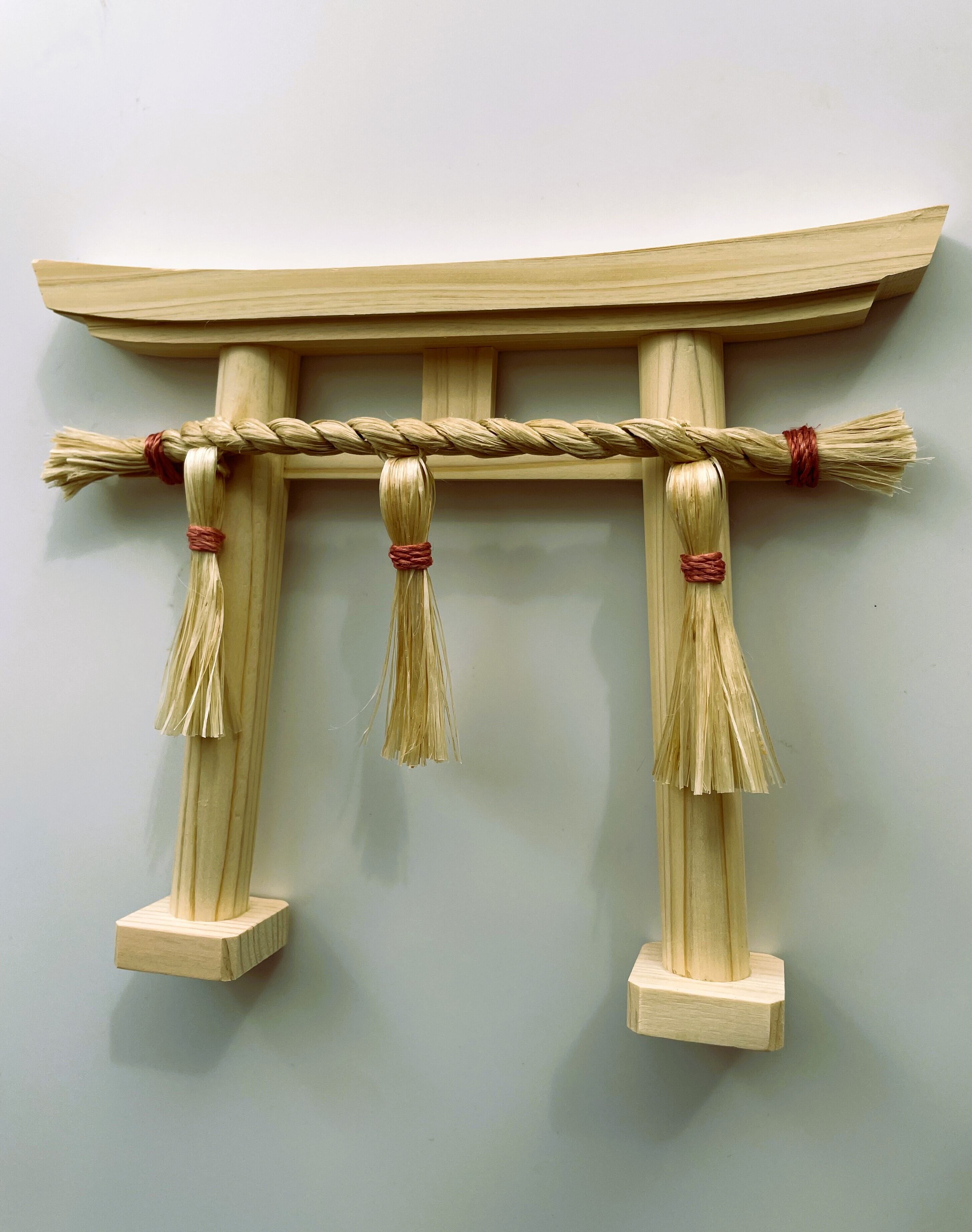 This “Blessing Torii” features rare Yashu seima (purified Japanese hemp) crafted into a sacred rope and paired with a torii made from domestic Japanese hinoki.