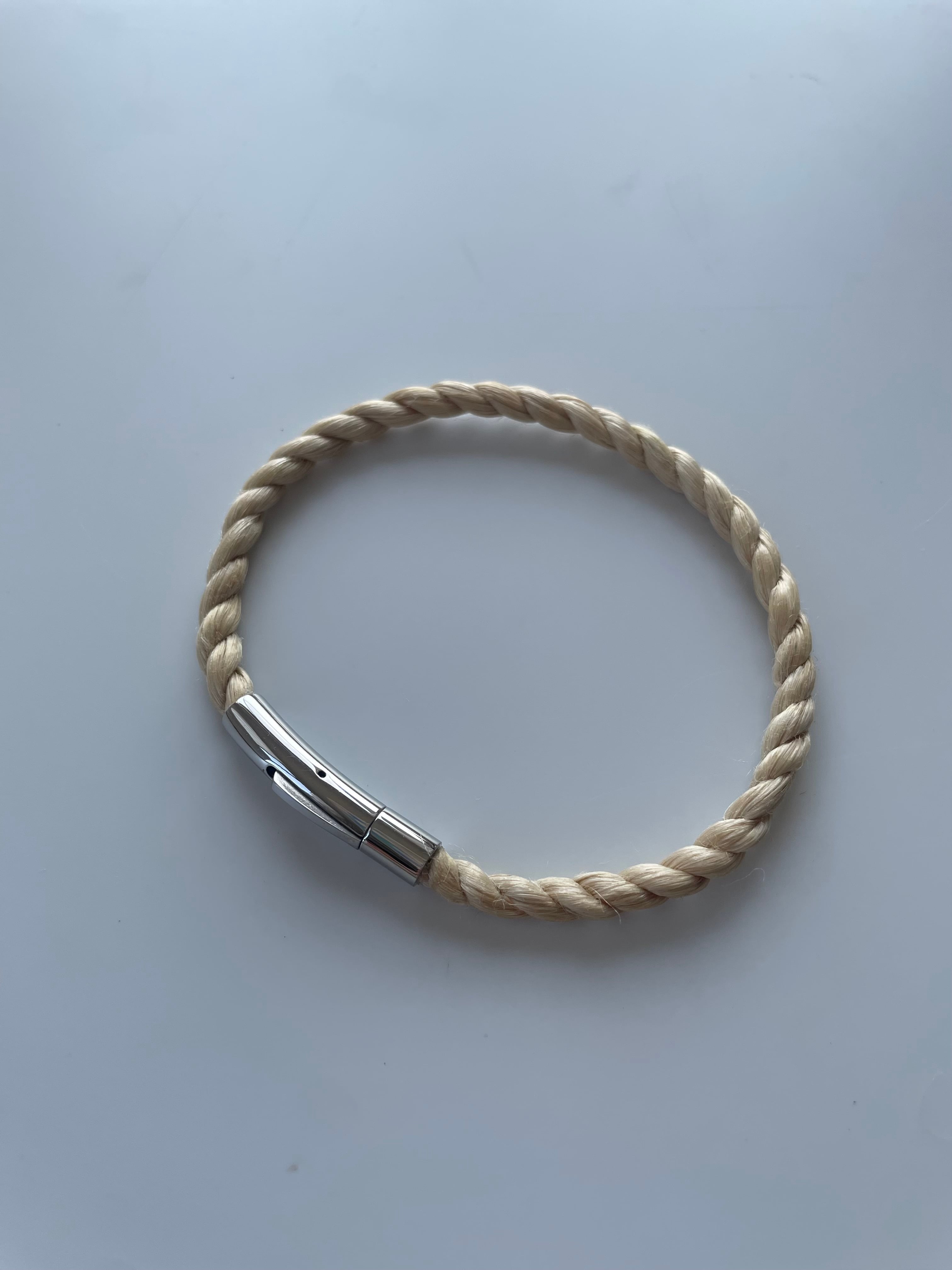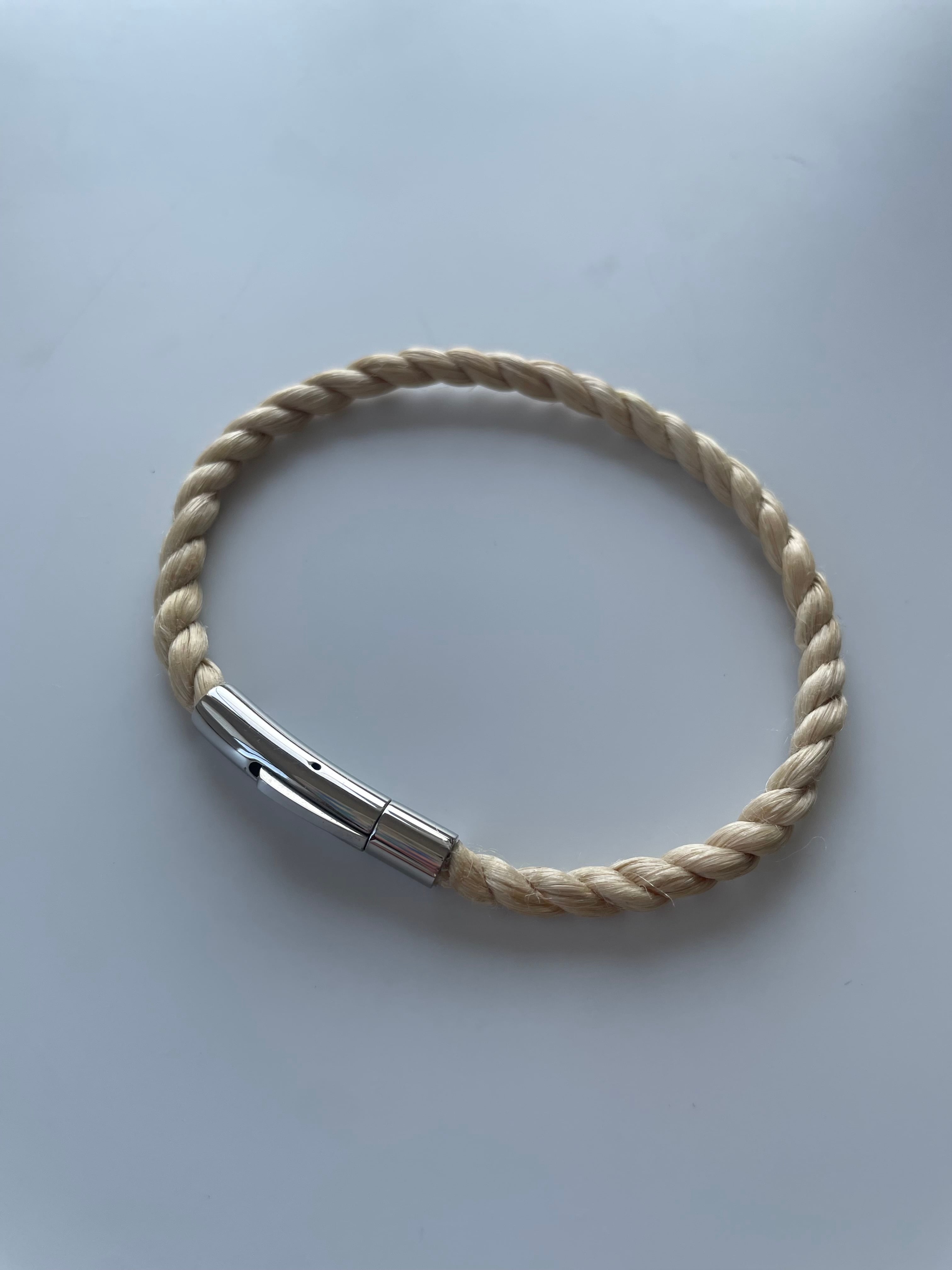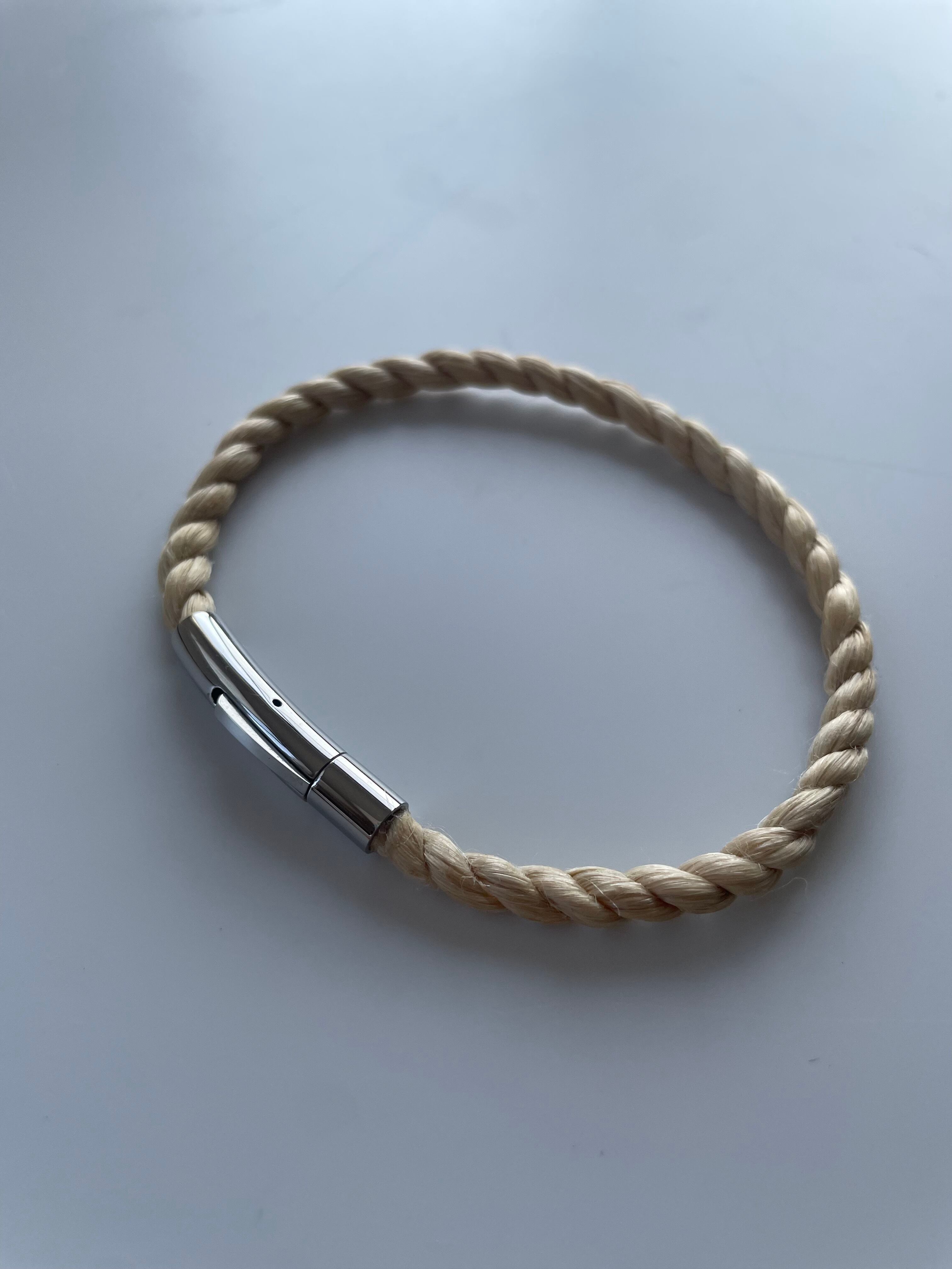 希少な野州麻の特等精麻を使用し、紐をやや太めに撚り上げた、シンプルなアンクレット/ブレスレットです。