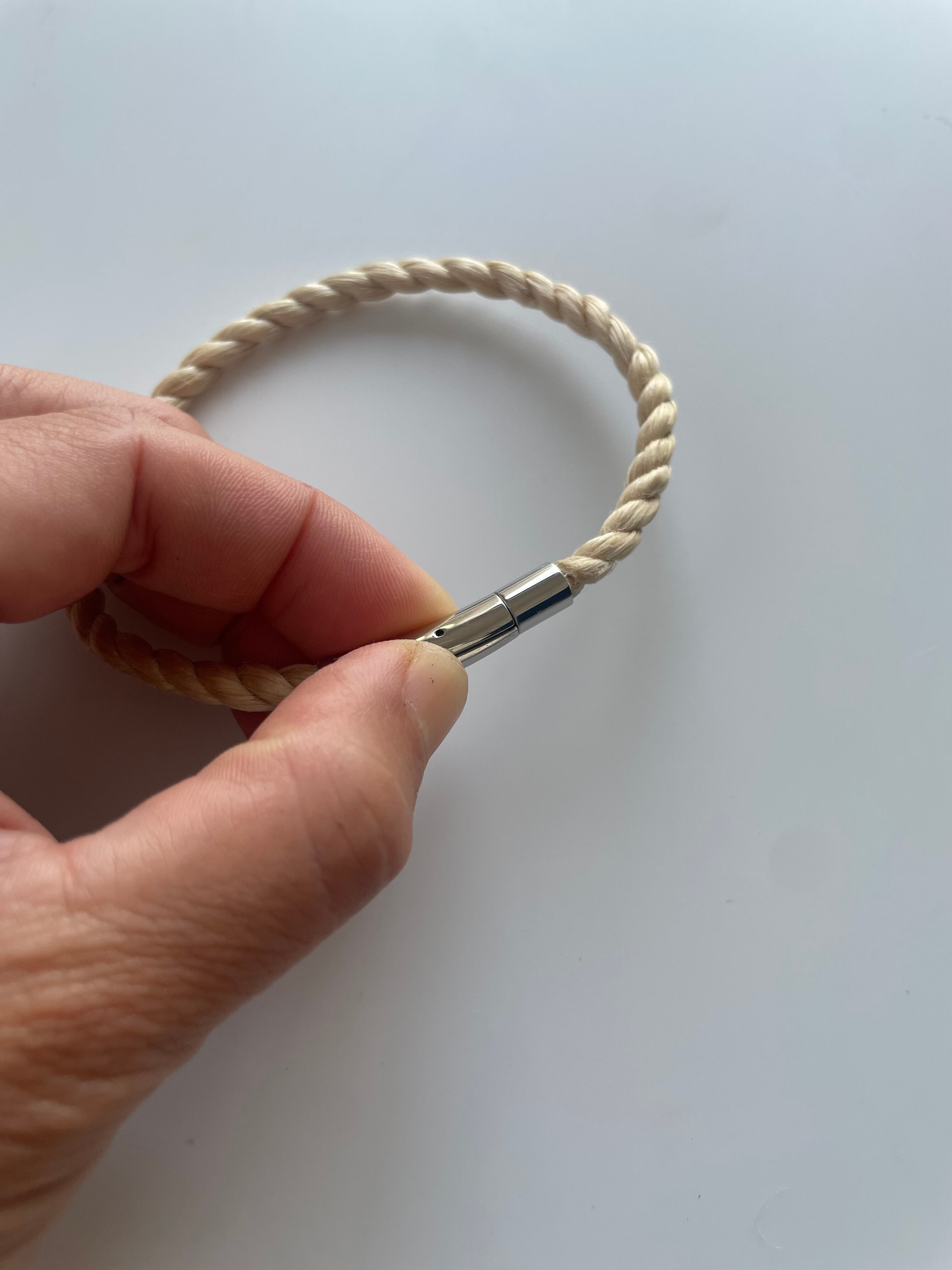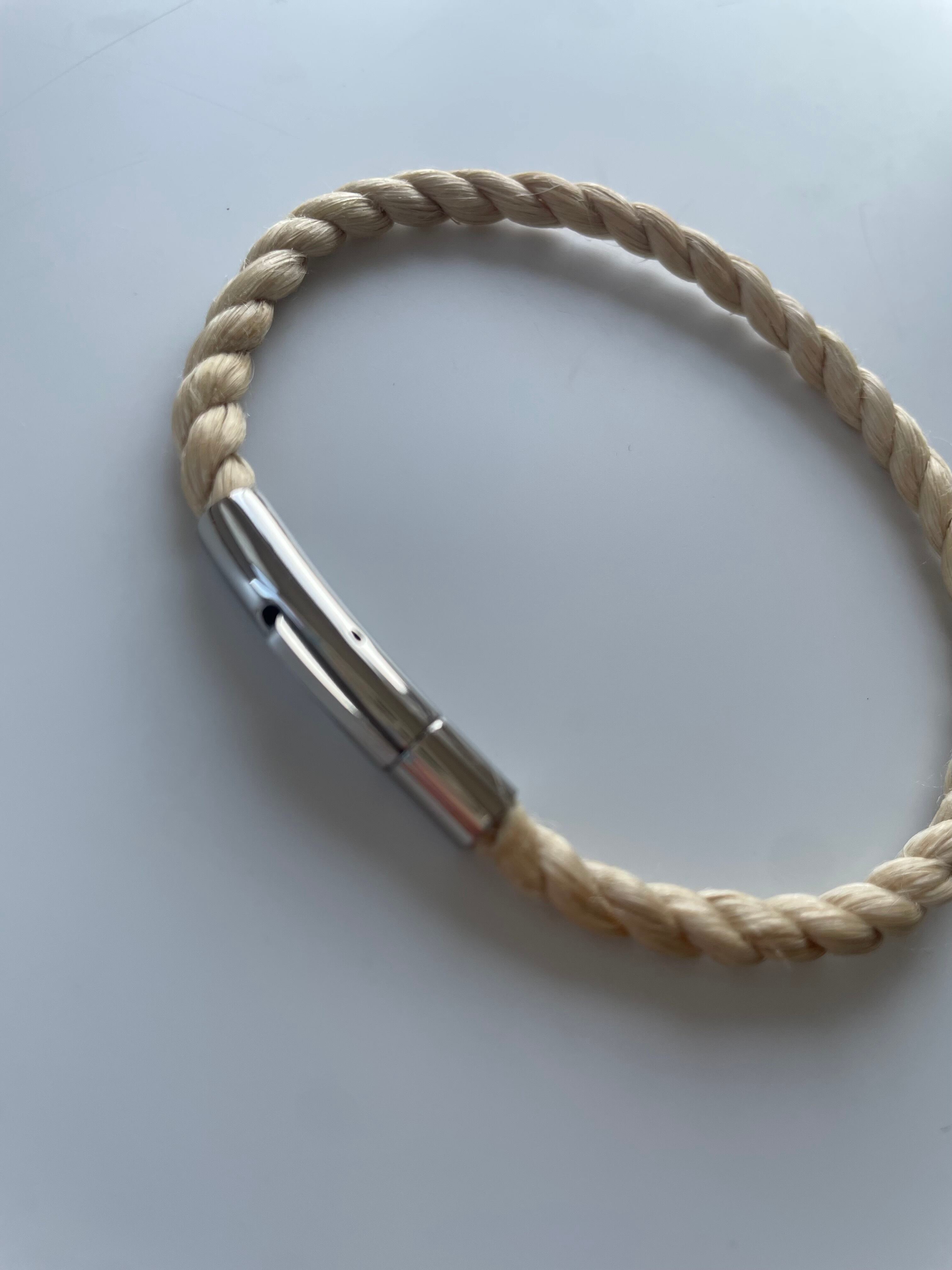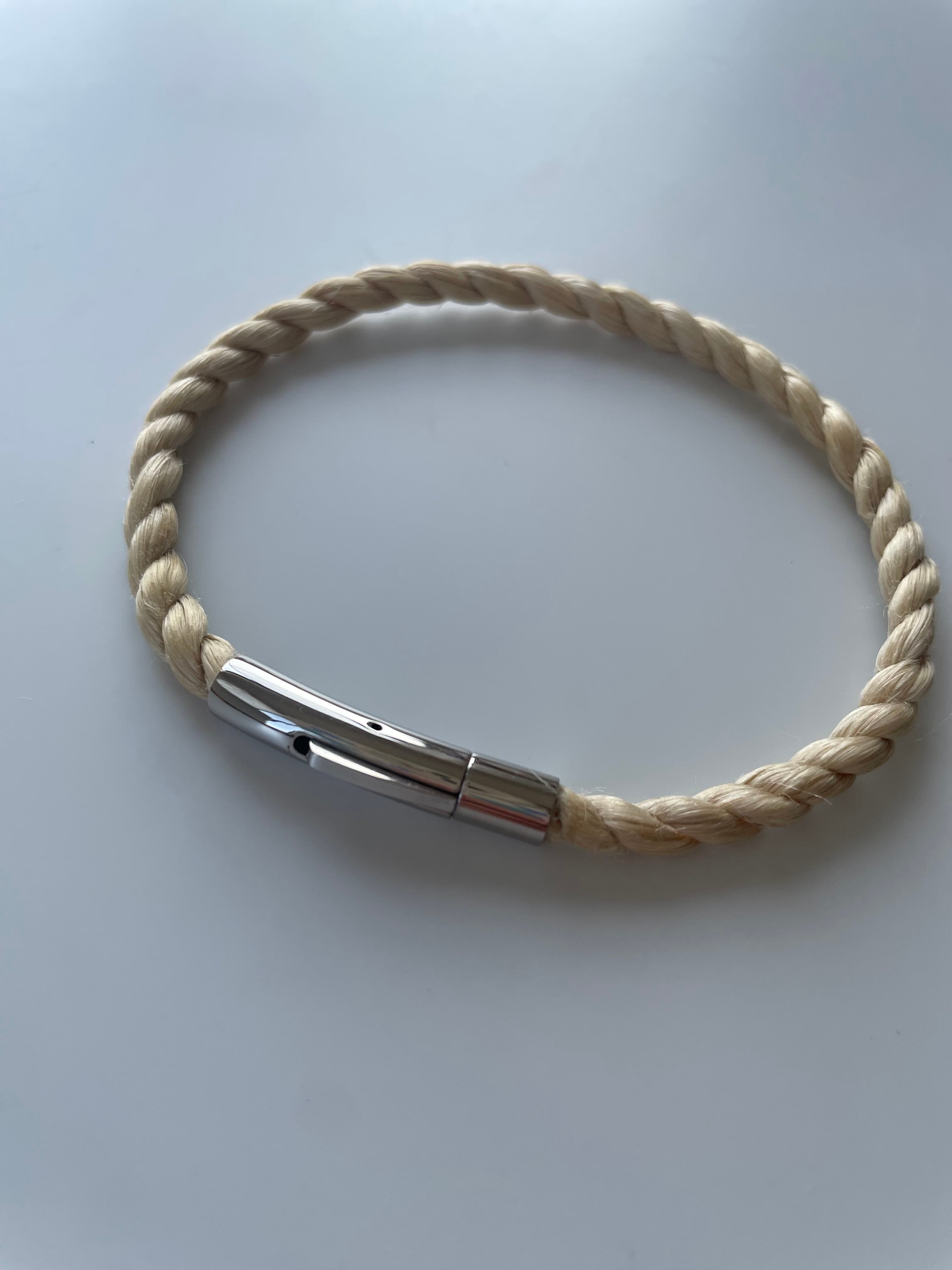 希少な野州麻の特等精麻を使用し、紐をやや太めに撚り上げた、シンプルなアンクレット/ブレスレットです。