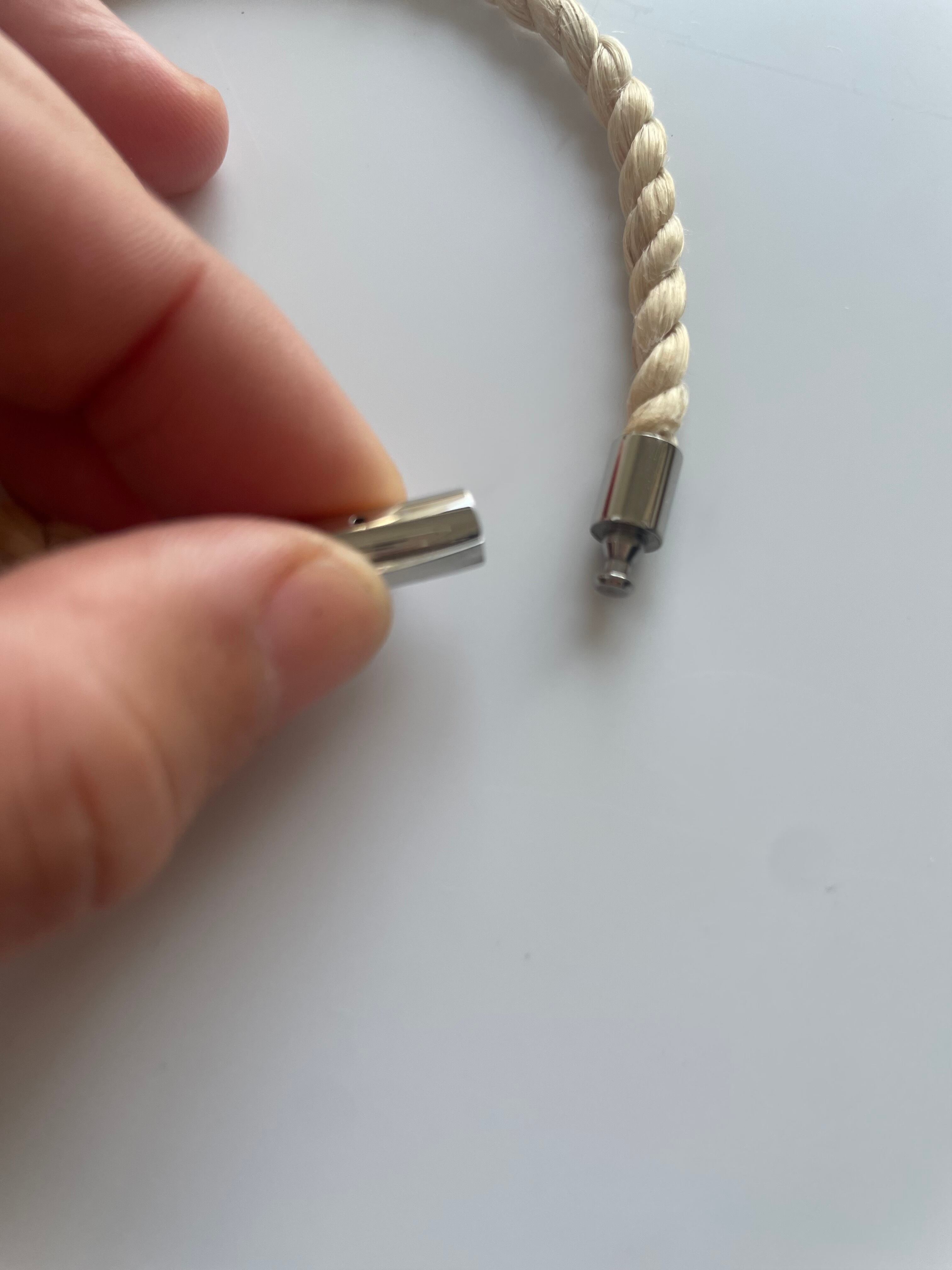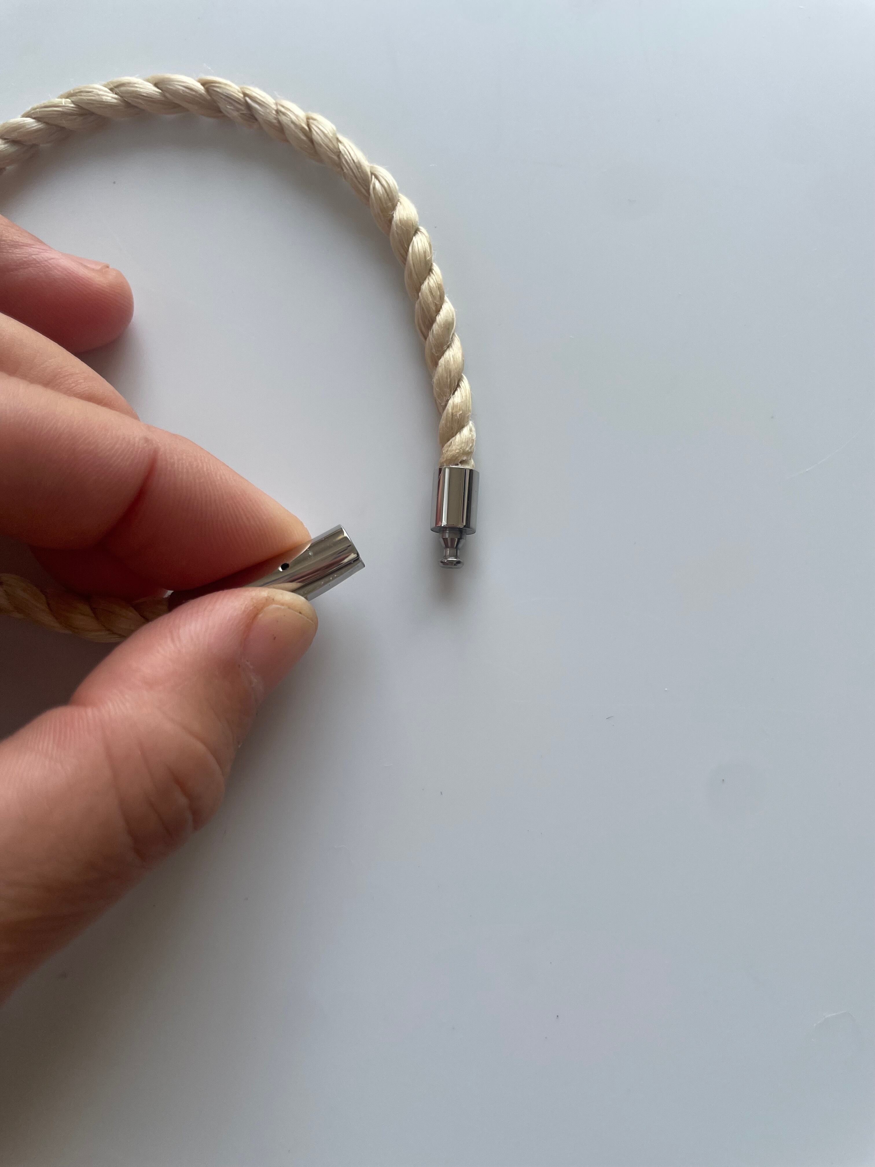 ネックレスの着脱の際は、紐ではなく金具(バヨネットスクラプやカラビナ)を持って扱ってください。