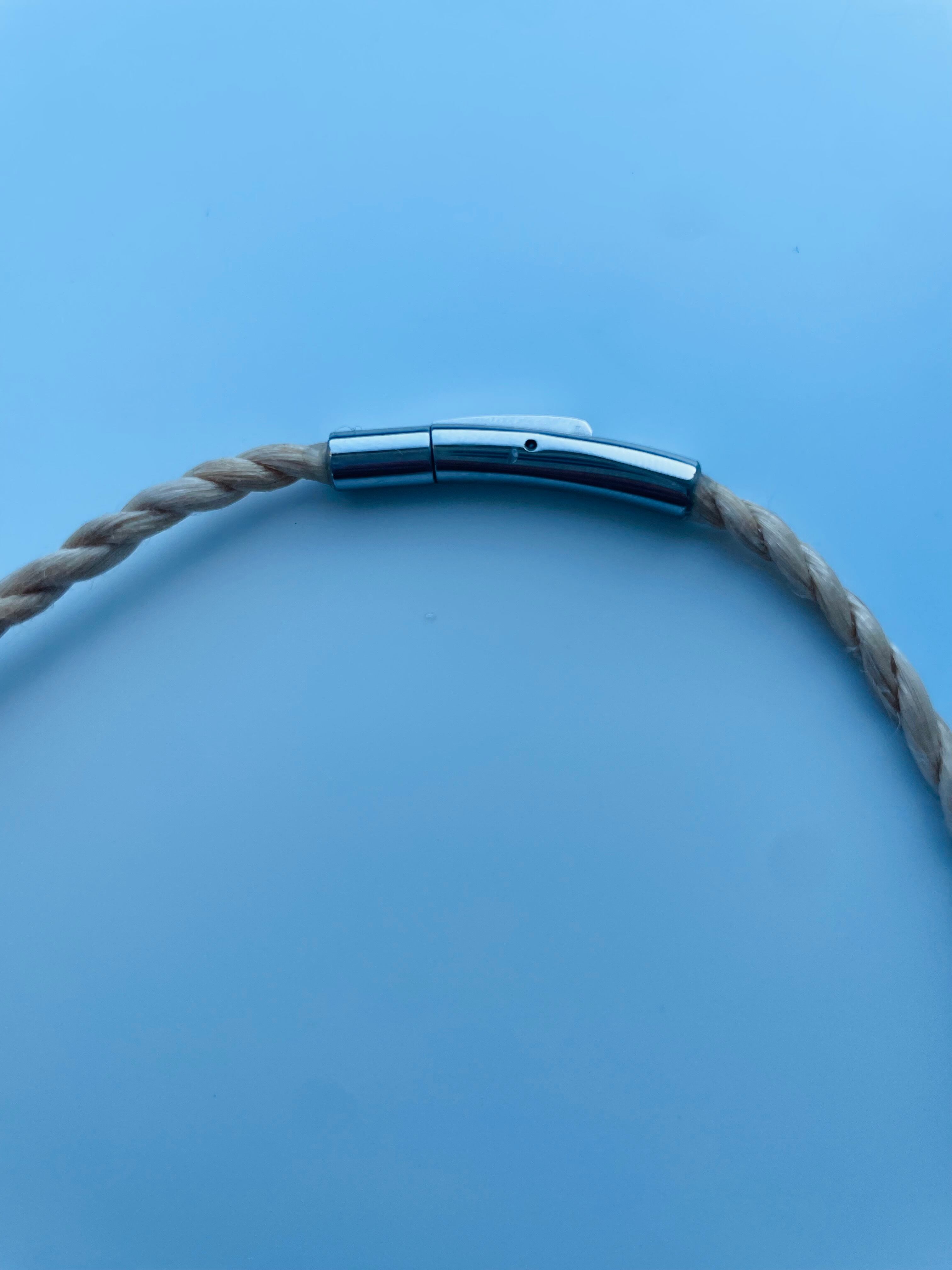 神聖な天然素材「精麻(せいま)」と、深い紫が美しいアメジストを組み合わせた浄化・守護・癒しをテーマにしたお守りネックレスです。