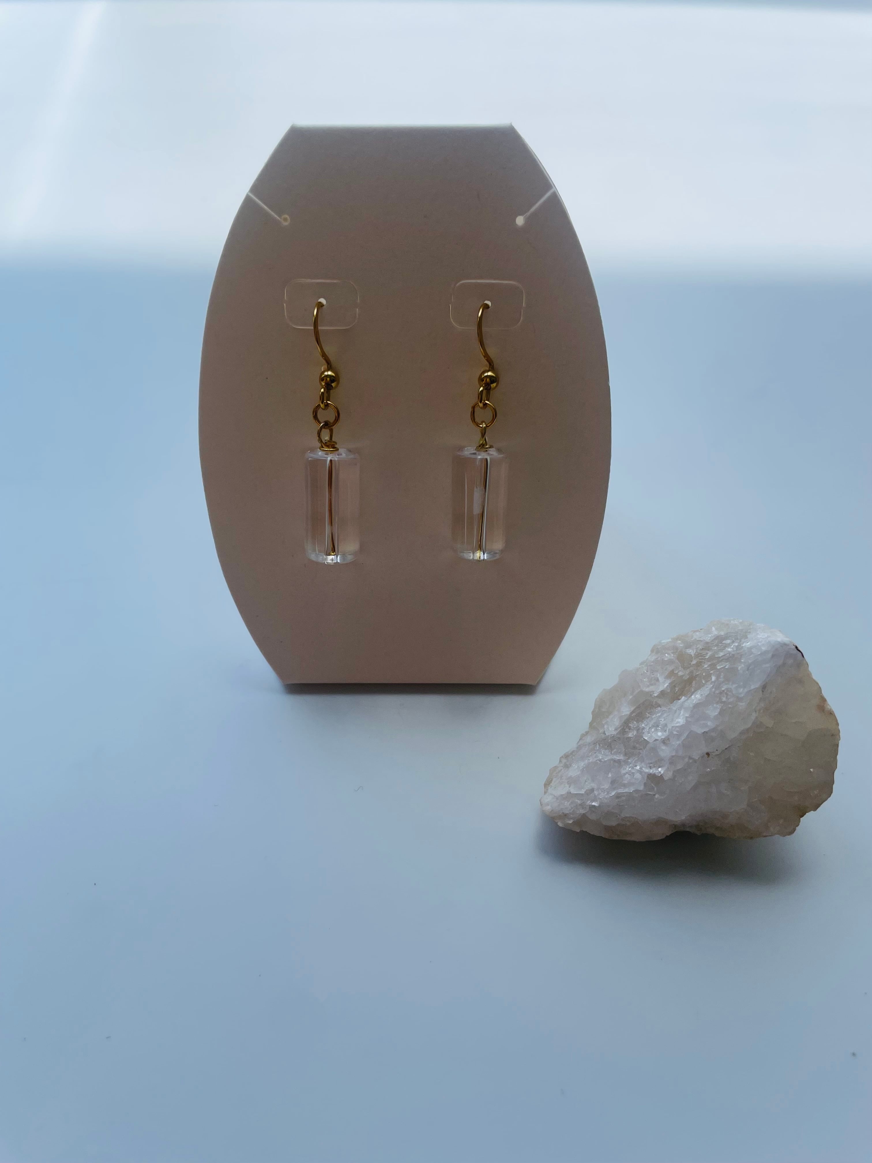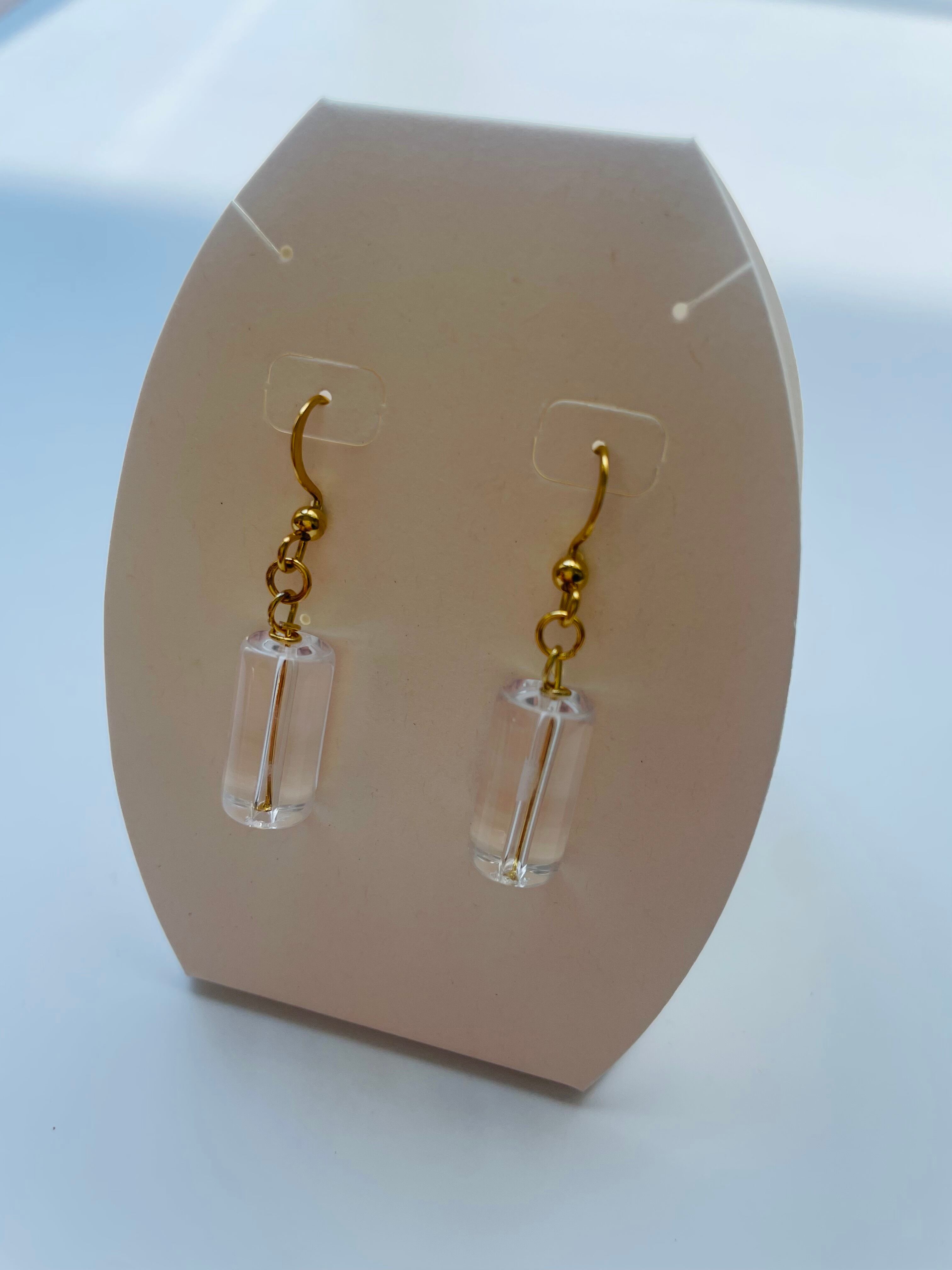透明度の高い水晶を使用した、シンプルで上品なピアスです。