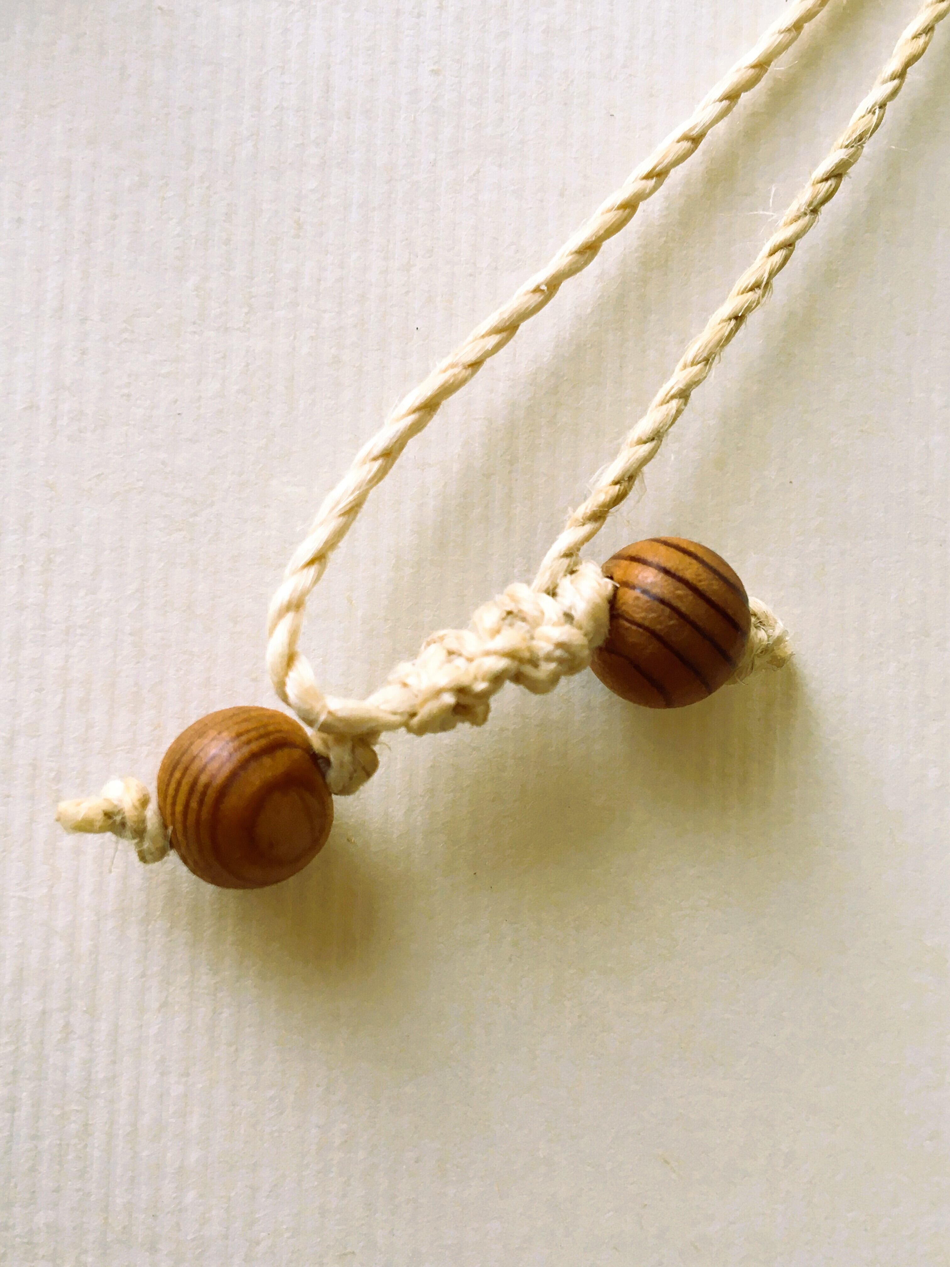 The ends of the cord are finished with aromatic Yakusugi beads, made from sacred Yakushima cedar, a World Natural Heritage wood.